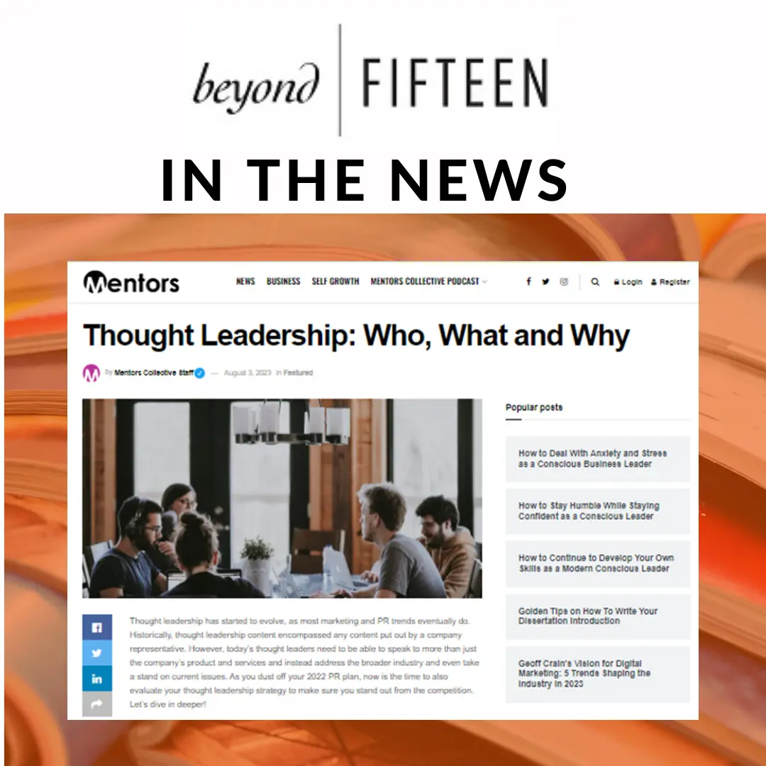 Beyond Fifteen’s Co-Founder, Leslie Licano wrote an article for Mentors Collective that discusses the evolution of thought leadership in marketing and PR. Thought leaders need ...